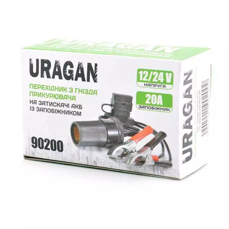 Адаптер с зажимами АКБ и предохранителем 20А, Uragan
