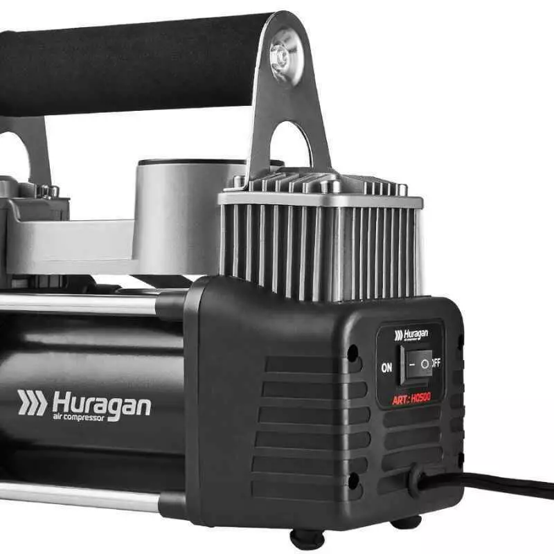 Автокомпрессор двухпоршневой на клеммы АКБ HURAGAN автомобильный компрессор для шин R13-R19 85 л/мин 10Атм (H0500)