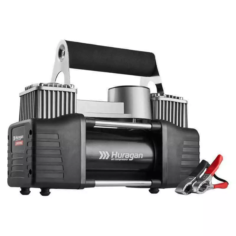 Автокомпрессор двухпоршневой на клеммы АКБ HURAGAN автомобильный