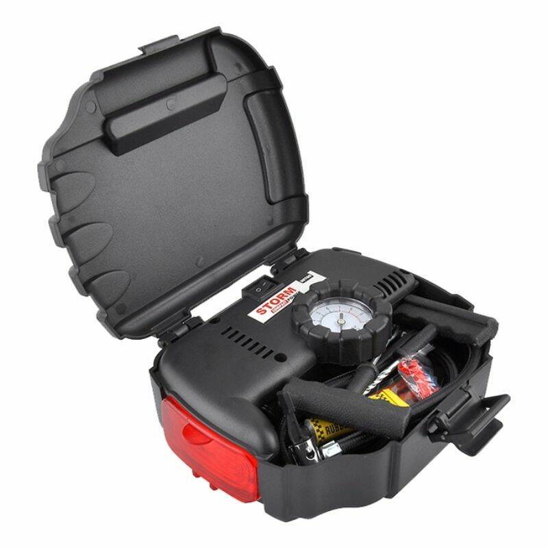 Автокомпрессор однопоршневой от прикуривателя STORM для шин R13-R15