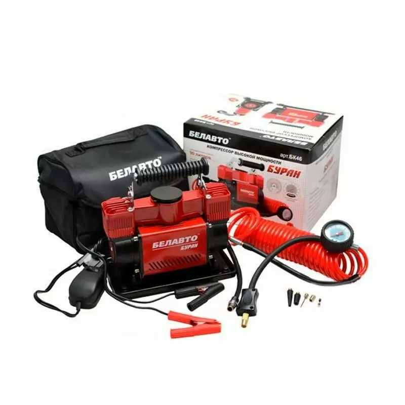 Модель Белавто БК46 или Буран представляет собой мощный электрический прибор, с двумя поршнями. Он максимально быстро справляется с накачкой шин или прочими надувными конструкциями (колеса велосипеда, лодки, матрасы) вне зависимости от места и времени. Устройство отличается впечатляющим уровнем мощности, а его работа радует бесперебойностью.