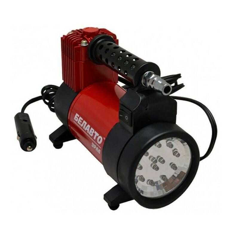 Автомобильный однопоршневой компрессор Урал от Белавто – портативная модель, быстро и легко накачивающая шины легкового авто разных марок, или прочие надувные конструкции (колеса велосипеда, лодки, матрасы). Устройство при всей компактности отличается впечатляющим уровнем мощности, а его работа радует бесперебойностью.