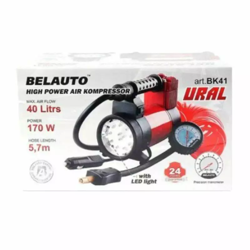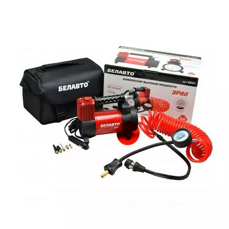 Автомобильный компрессор однопоршневой BelAuto УРАЛ для накачки шин R13-R19 10 Атм 40 л/мин 170 Вт (BK41)