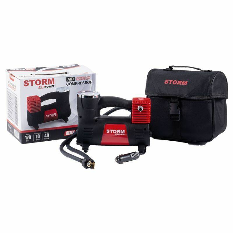 Автомобильный компрессор однопоршневой для шин R13-R16 в прикуриватель STORM Max Power 10Атм 40л/мин 170Вт (20500)