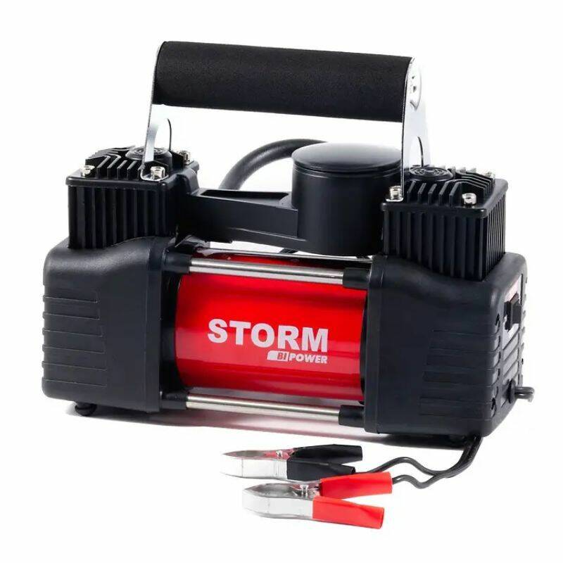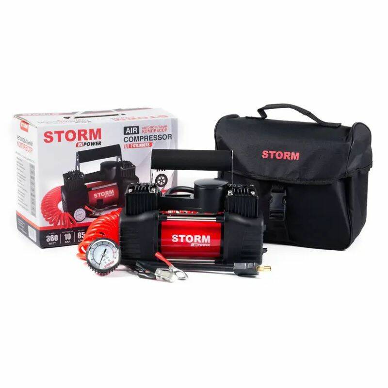 Автомобильный компрессор с зажимами двухпоршневой для шин R13-R17 на АКБ STORM Bi-Power 10Атм 85л/мин 360Вт (20400)