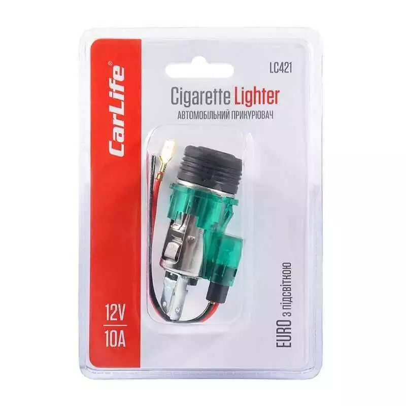 Автоприкуриватель CARLIFE LC421. Разьем прикуривателя EURO, с подсветкой. Удобный в использовании, подсветит в темное время суток. Приятная на ощупь кнопка зажигания. Имеет отличный дизайн и четкие контуры. Подойдет к любому автомобильному салону и будет отличным дополнением. Качество изделия обеспечит долгий срок эксплуатации.