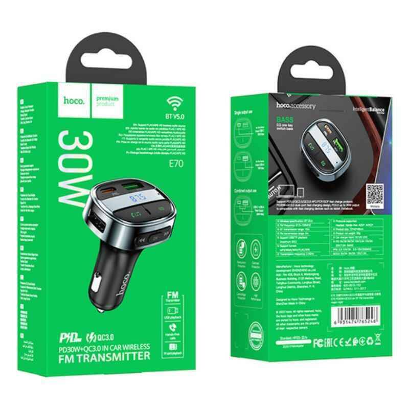 АЗП Hoco FM Launcher E70 PD30W (USB + Type-C) (black)