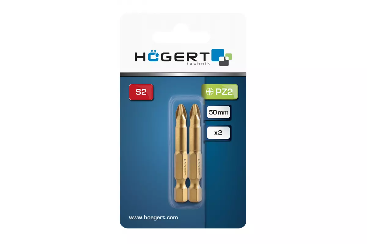 Биты PZ2 50 мм, сталь S2, нитрид титана, 2 шт. (HT1S395)