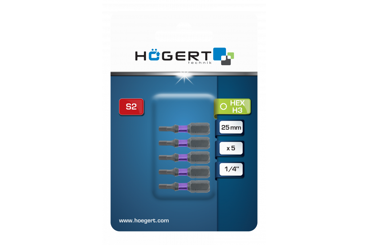 Биты ударные HEX 3, 25 мм, сталь S2, 5 шт. (HT1S145)