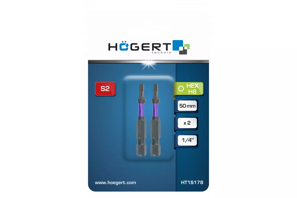 Биты ударные HEX 6, 50 мм, сталь S2, 2 шт. (HT1S178)