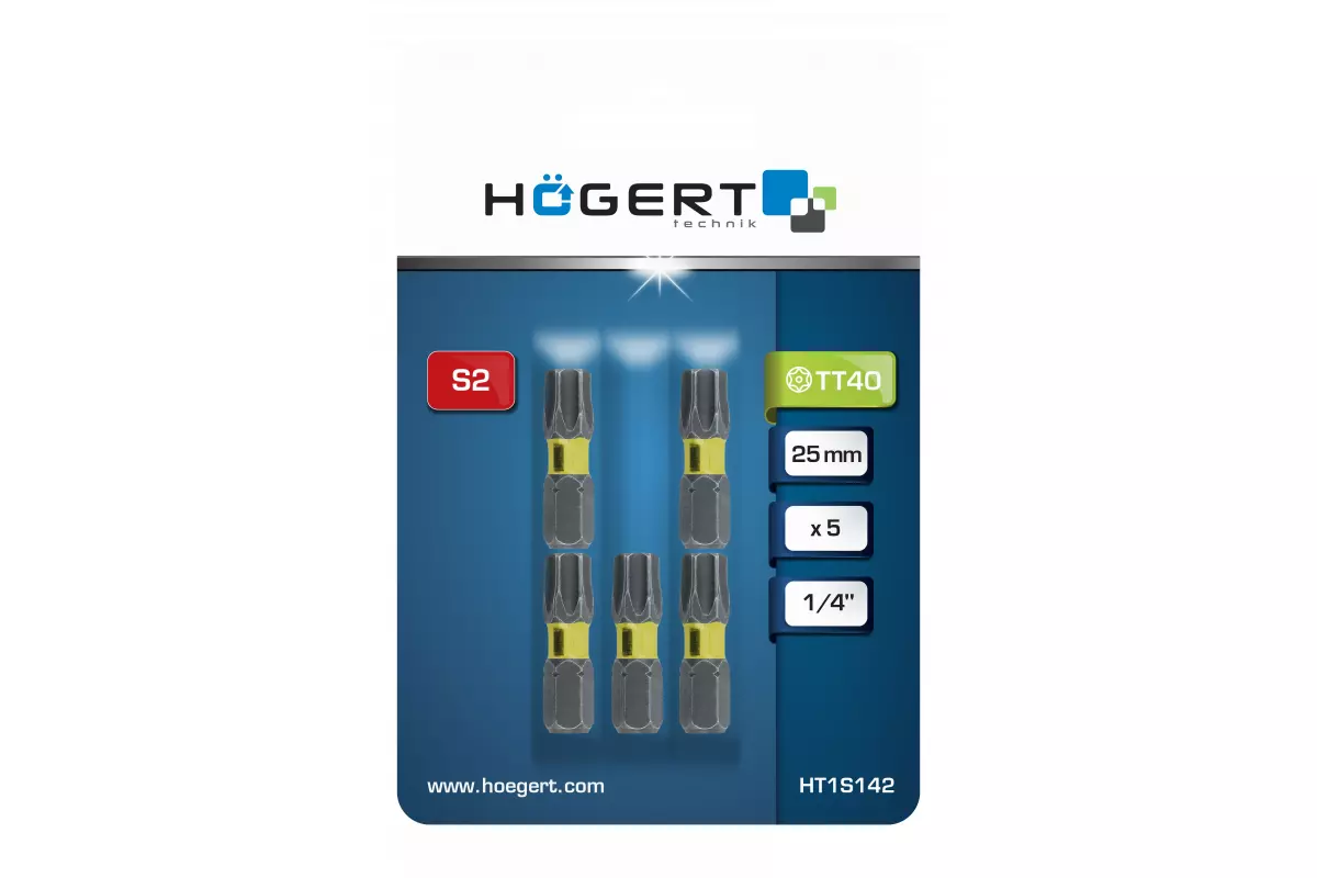 Биты ударные TORX 40, 25 мм, сталь S2, 5 шт. (HT1S142)