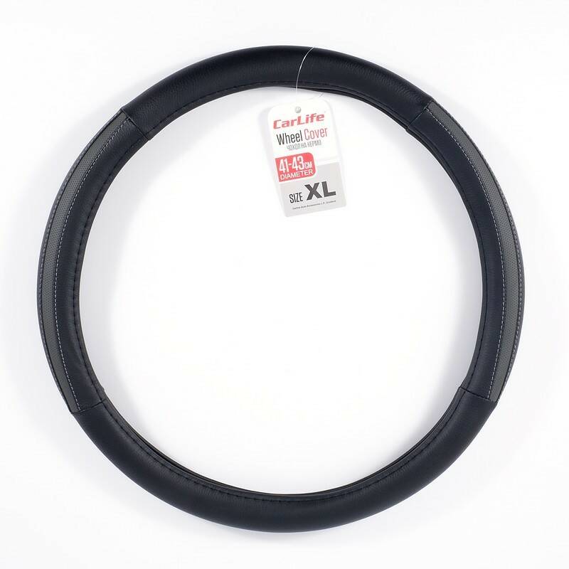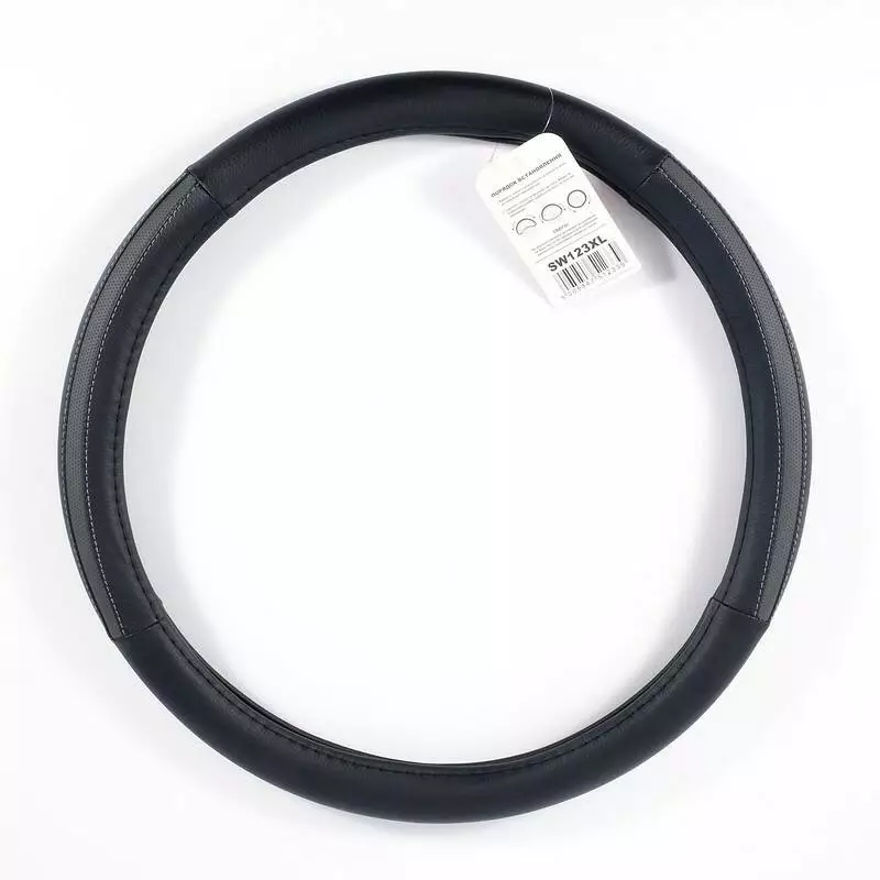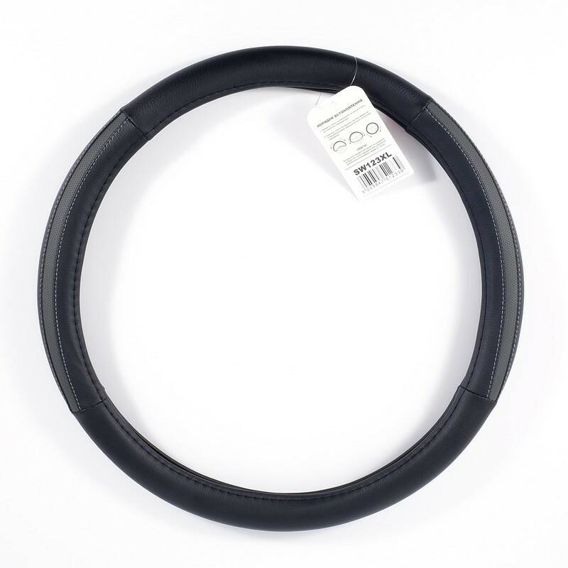 Чехол на руль XL (41-43 см) из экокожи и белой резины CARLIFE черный с 2-мя серыми вставками и перфорацией (SW123XL) – это передовая разработка в сфере производства чехлов на руль автомобиля. В данном чехле используется исключительно высококачественные материалы. Это позволяет вам передвигаться максимально комфортно в любое время года. В летнее время руки не потеют и не скользят по рулю. А зимой вы не ощущаете дискомфорта от контакта с холодным рулем.