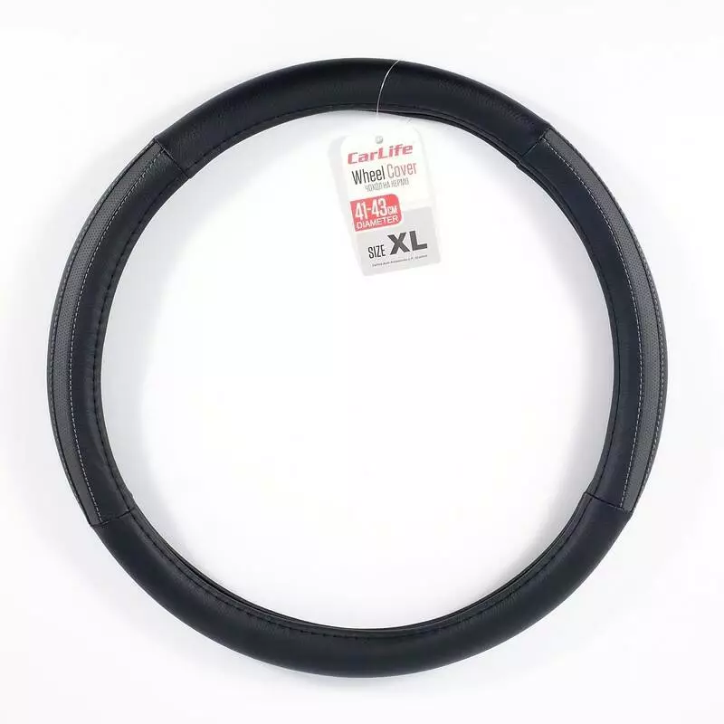 Чехол на руль XL (41-43 см) из экокожи и белой резины CARLIFE черный с 2-мя серыми вставками и перфорацией (SW123XL) не только повысит уровень комфорта и безопасности при управлении автомобилем, но и добавит изюминку в интерьер вашего авто. В данной модели чехла устранено проскальзывание рулевого колеса в процессе эксплуатации, что делает ваше вождение максимально комфортным и безопасным.