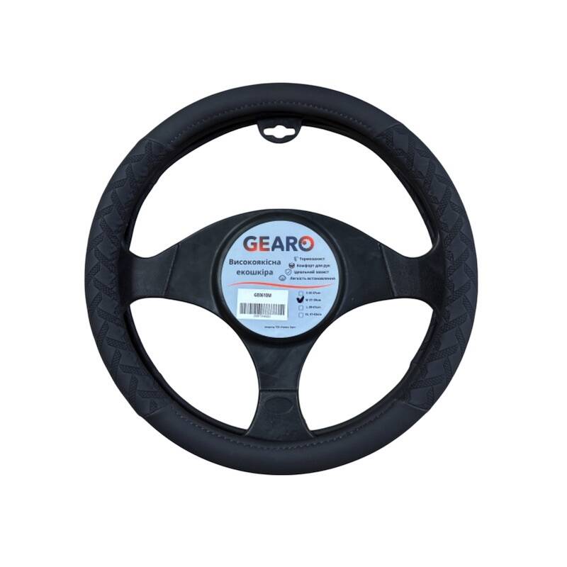 Чехол на руль Gearo из экокожи с узором черный размер M (GE0610M) – это стильное и практичное решение для защиты руля и повышения комфорта при вождении. Благодаря качественным материалам и продуманной конструкции он надежно фиксируется на рулевом колесе, улучшая сцепление и делая управление автомобилем более удобным. Такой аксессуар станет отличным выбором для автолюбителей, которые ценят надежность, эстетику и долговечность.