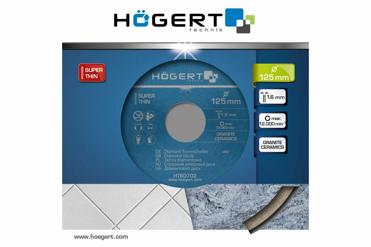 Диск отрезной алмазный, сплошная кромка 125 х 1,6 х 22,2 мм (HT6D702)