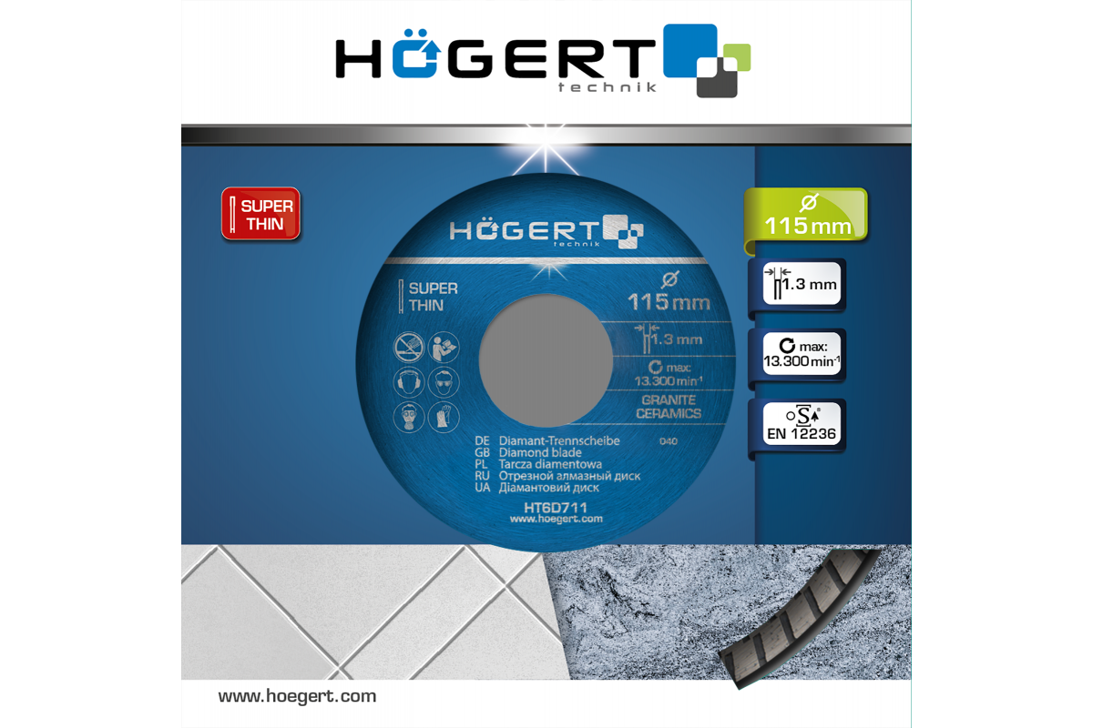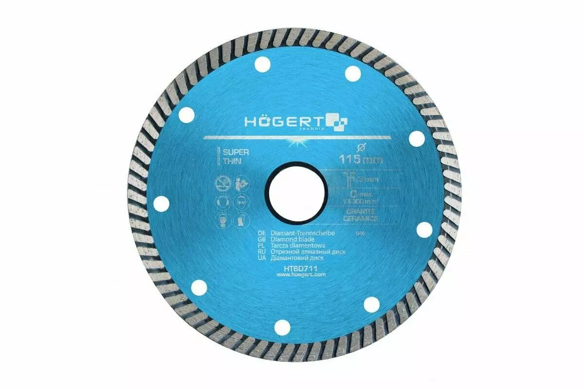 Диск отрезной алмазный супертонкий 115 х 1,3 х 22,2 мм (HT6D711)