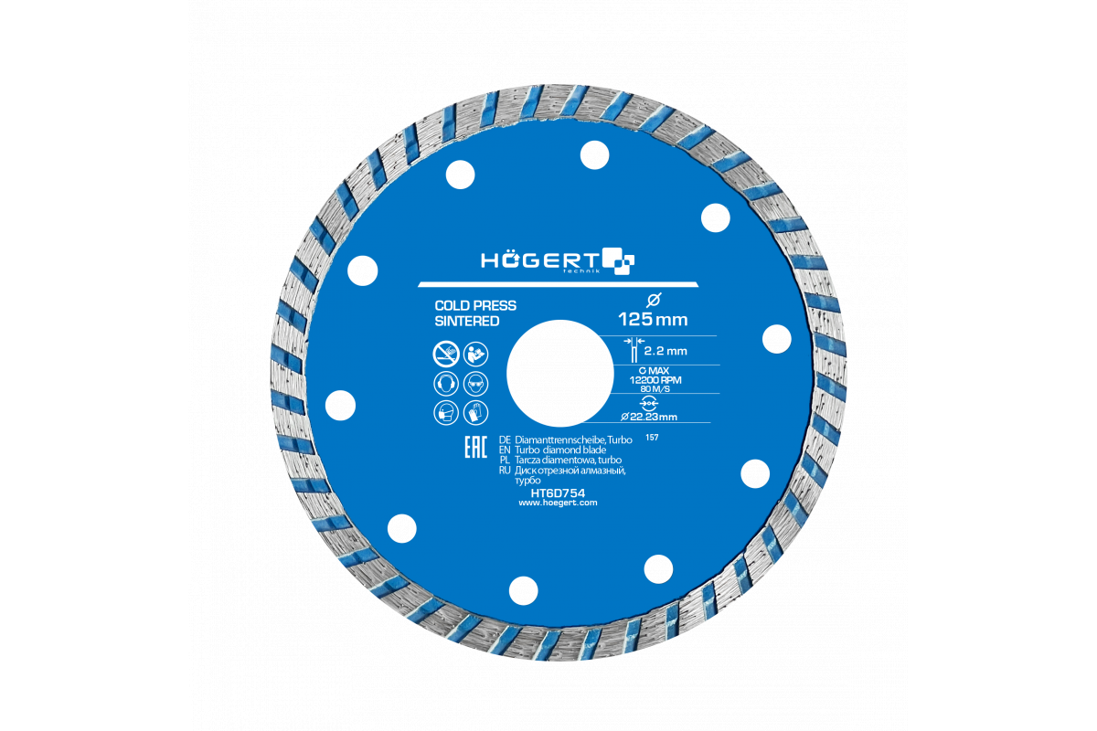 Диск отрезной алмазный turbo 125 х 2 х 22,3 мм (HT6D754)