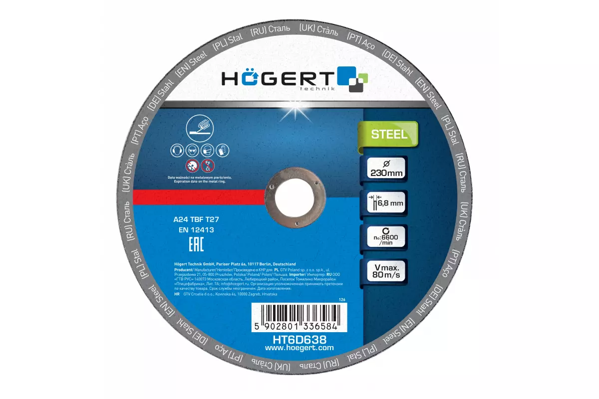Диск шлифовальный по металлу 230x6,8x22,23 10шт. (HT6D638)