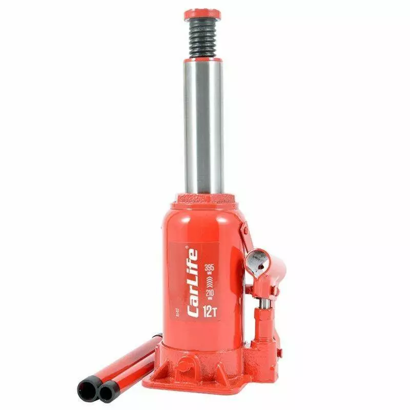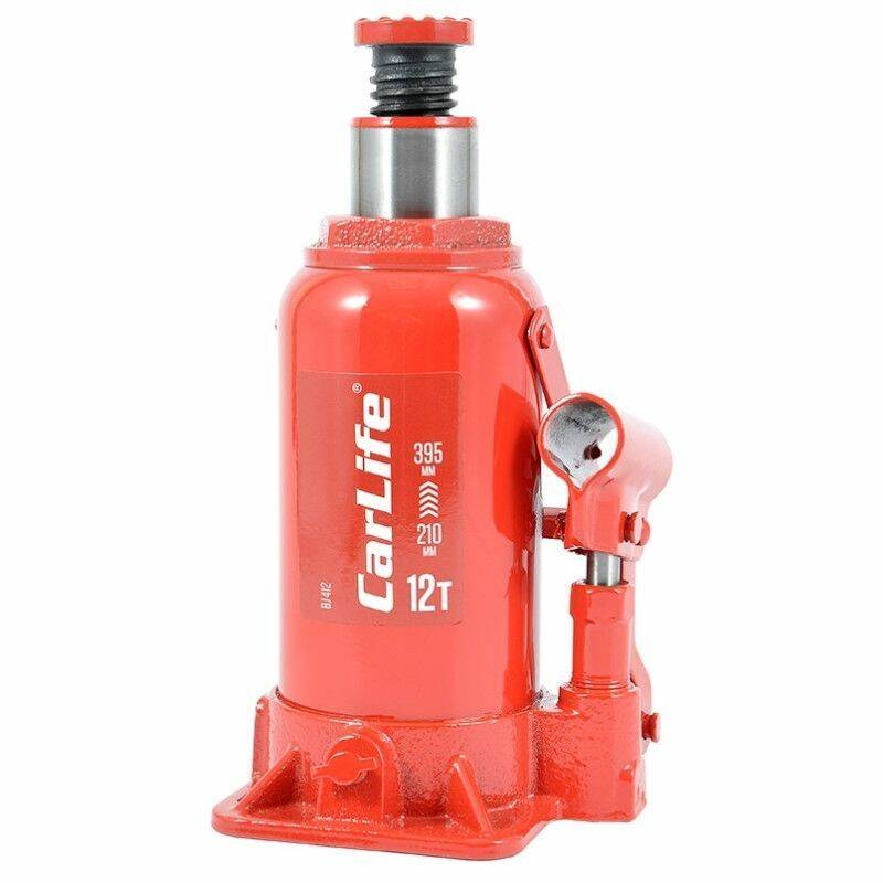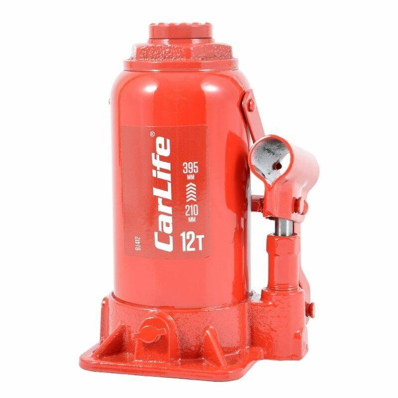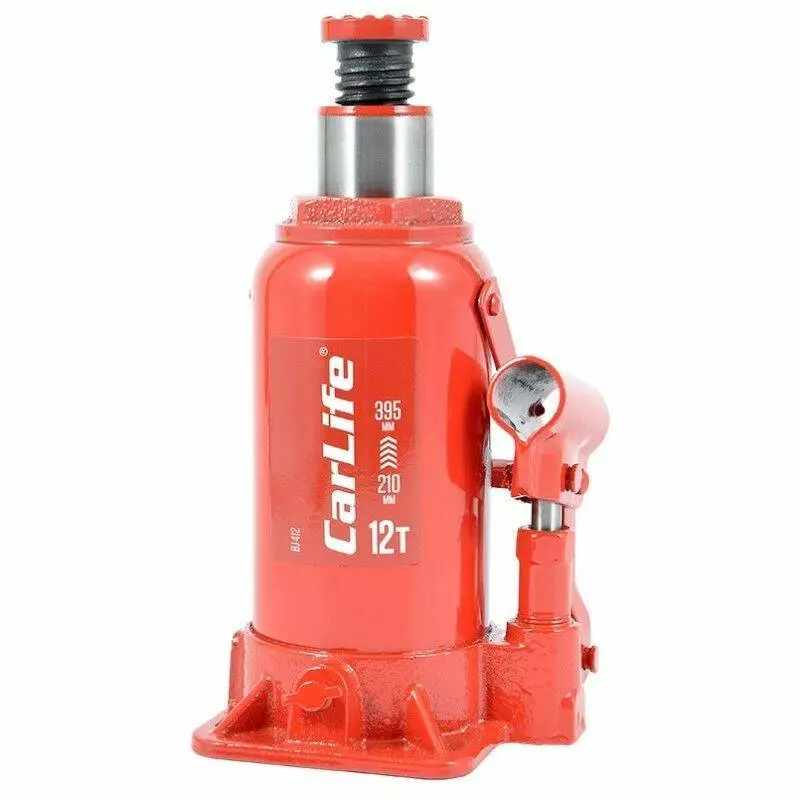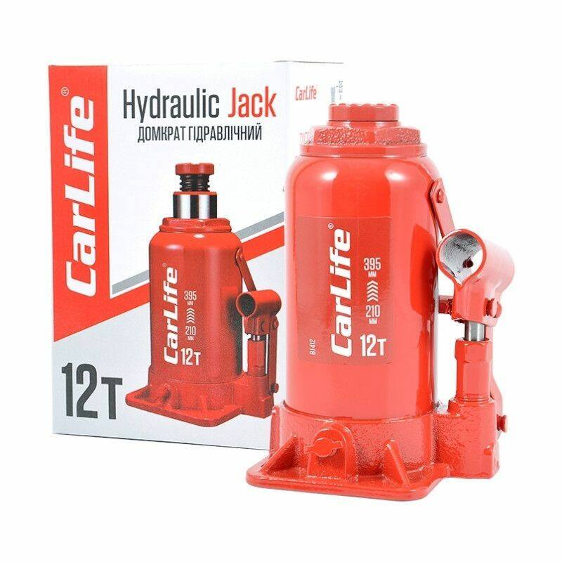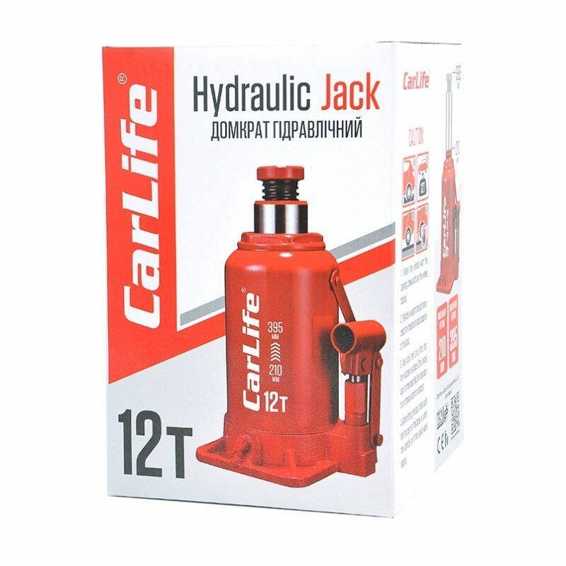 Домкрат гидравлический бутылочный 12т CarLife 210-395мм для автомобиля в картонной упаковке (BJ412)