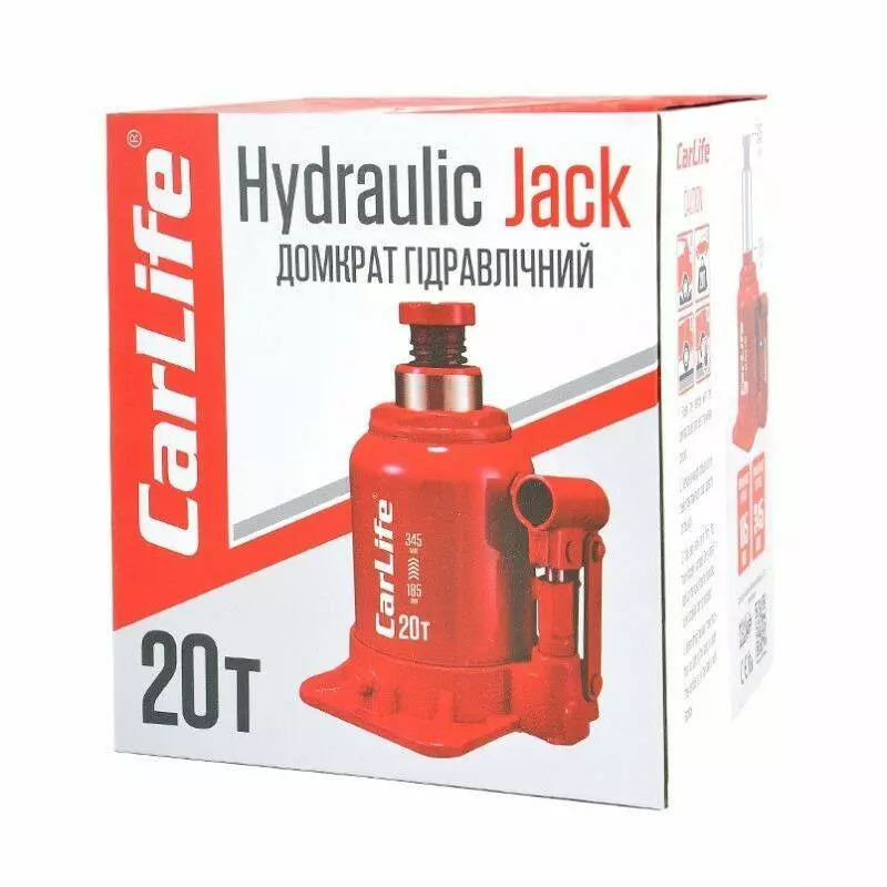 Домкрат гидравлический бутылочный 20т CarLife 185-345мм для автомобиля в картонной упаковке (BJ420S)