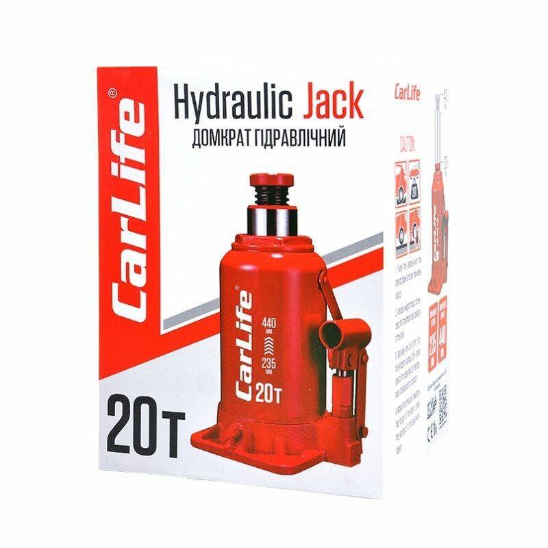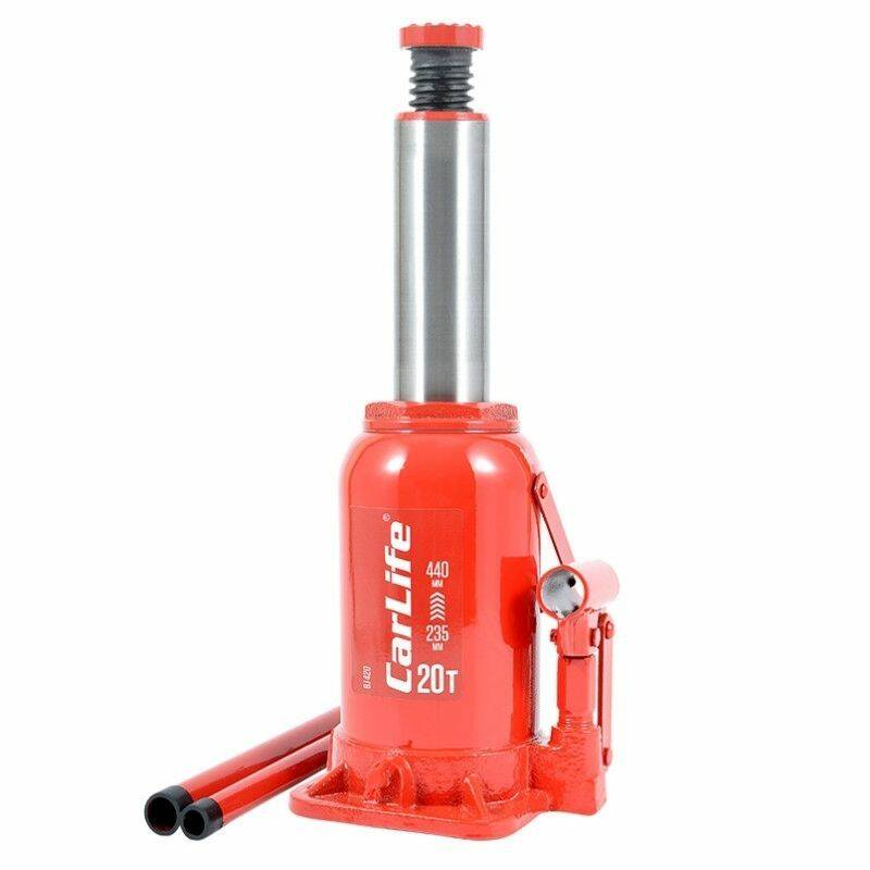 Домкрат гидравлический бутылочный 20т CarLife 235-440мм для автомобиля в картонной упаковке (BJ420)