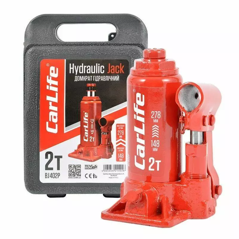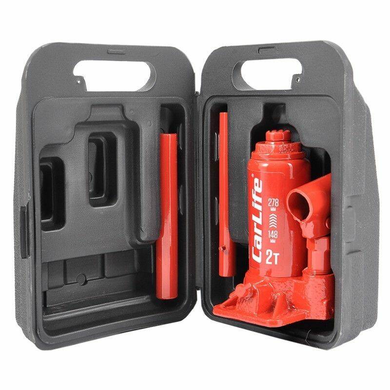 Домкрат гидравлический бутылочный 2т CarLife 148-278мм для автомобиля в пластиковой упаковке (BJ402P)