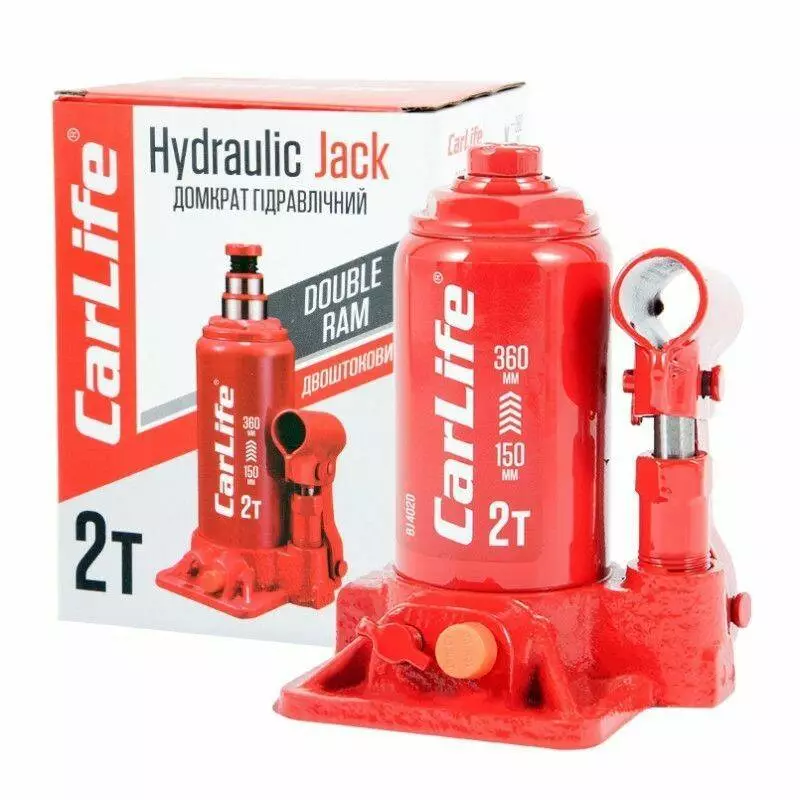 Домкрат гидравлический бутылочный 2т CarLife 150-360мм для автомобиля в картонной упаковке (BJ402D)