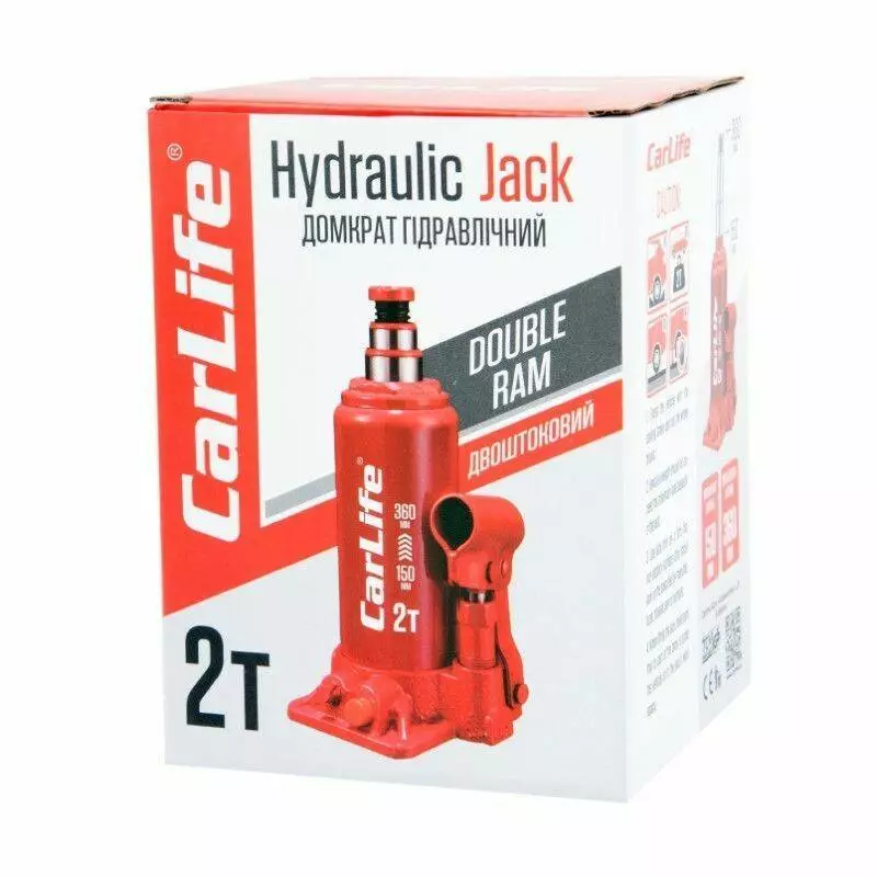 - Два штока для дополнительной стабильности: Домкрат CarLife BJ402D оснащен двумя штоками, что увеличивает его устойчивость и делает подъем более эффективным. Это особенно важно при подъеме больших и тяжелых объектов, когда требуется дополнительная стабильность и прочность конструкции.