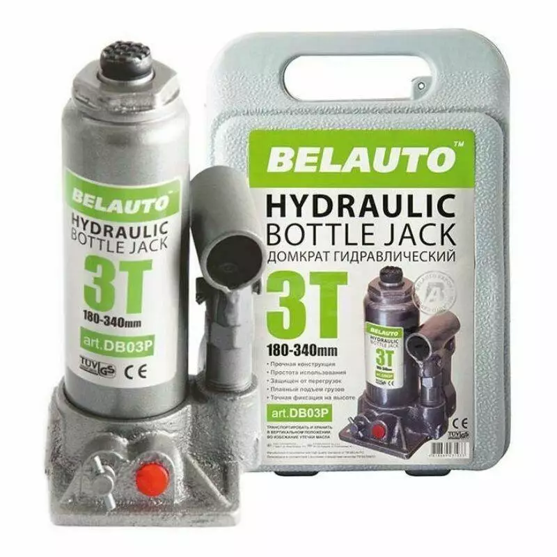 Домкрат гидравлический бутылочный 3т BELAUTO 180-340мм для автомобиля в пластиковой упаковке (DB03P)