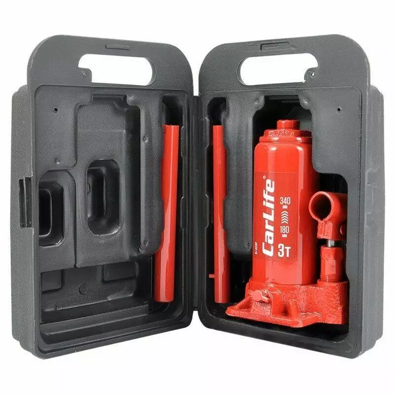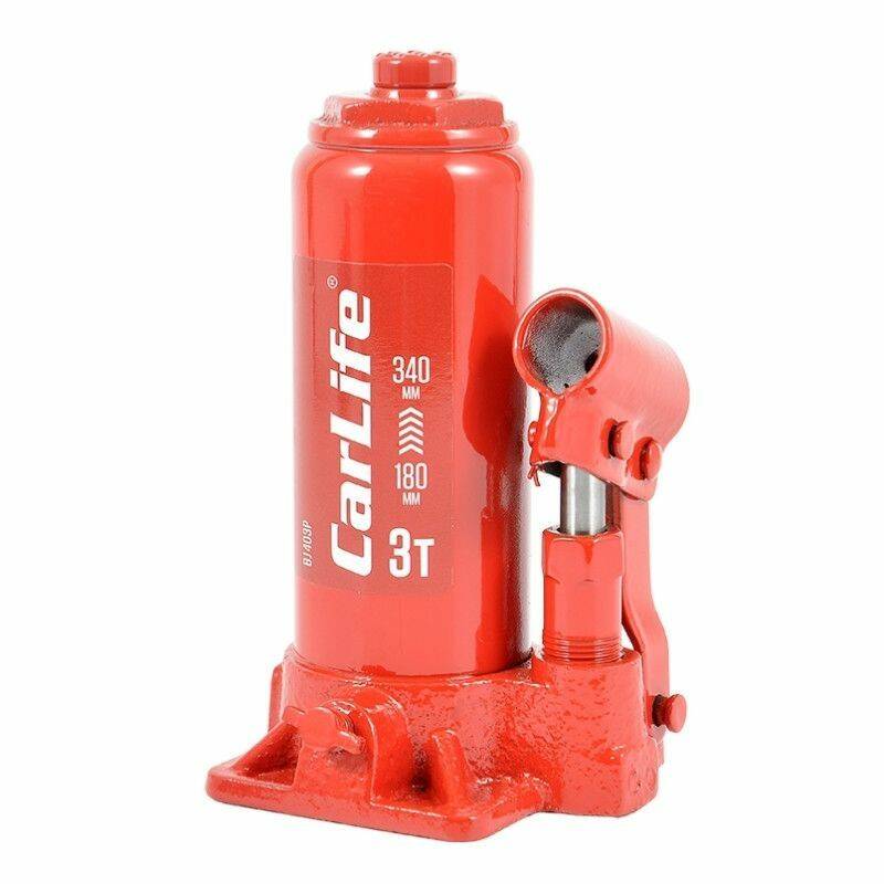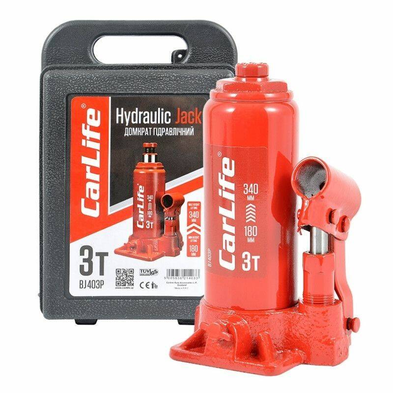 Домкрат гидравлический бутылочный 3т CarLife 180-340мм для автомобиля в пластиковой упаковке (BJ403P)