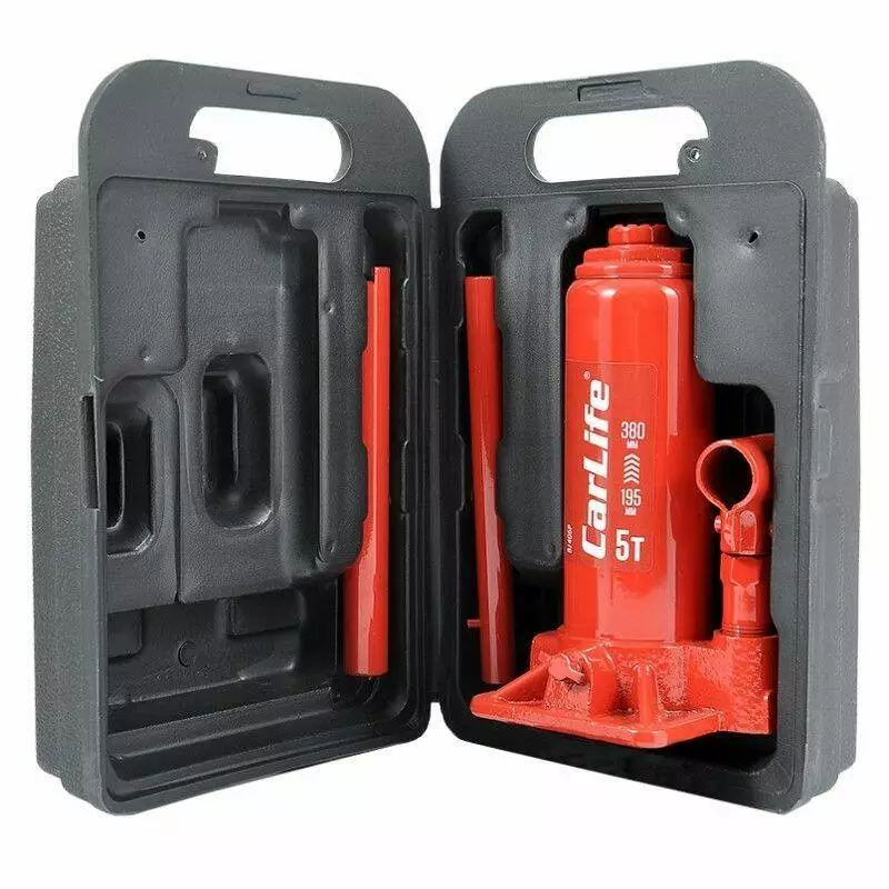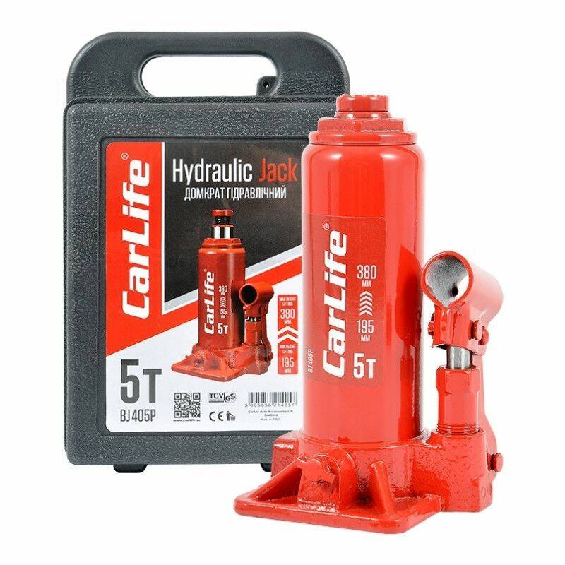 Домкрат гидравлический бутылочный 5т CarLife 195-380мм для автомобиля в пластиковой упаковке (BJ405P)