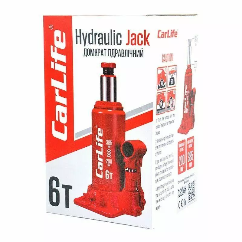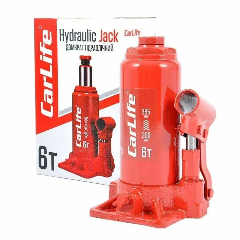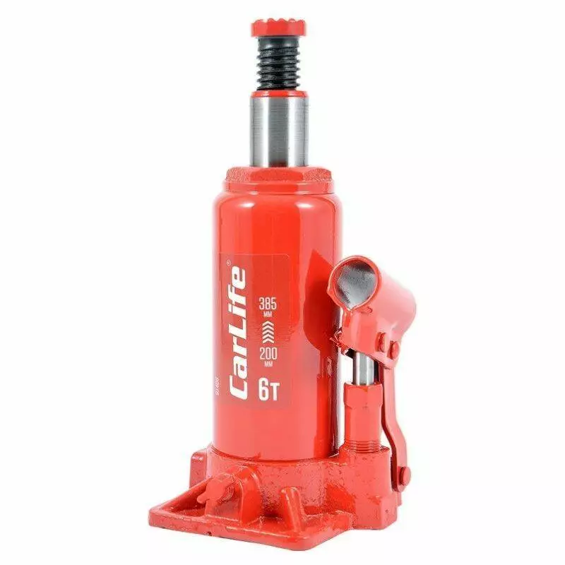 Домкрат гидравлический бутылочный 6т CarLife 200-385мм для автомобиля в картонной упаковке (BJ406)