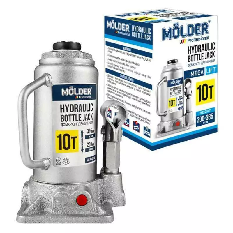 Гидравлический домкрат Molder MA29100 — это профессиональный инструмент, рассчитанный на экстремальные нагрузки и предназначенный для обслуживания тяжелой техники. Благодаря грузоподъемности до 10 тонн и прочной конструкции, этот домкрат идеально подойдет для работы с грузовиками, спецтехникой, коммерческим транспортом и сельхозмашинами. Модель выполнена в компактной бутылочной форме, что обеспечивает высокую устойчивость при эксплуатации. Поставляется в картонной упаковке, удобной для хранения и транспортировки.