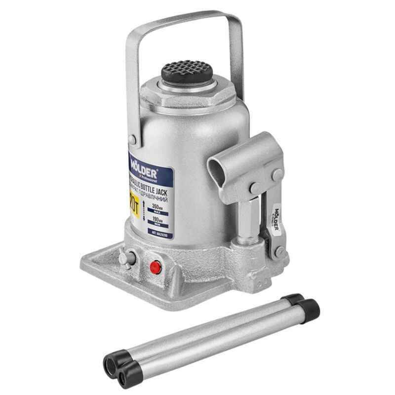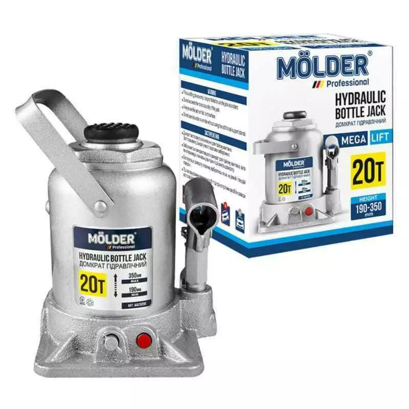 Гидравлический домкрат Molder MA29200 – это профессиональное решение для поднятия особо тяжёлой техники. С максимальной грузоподъёмностью до 20 тонн он идеально подходит для использования в грузовом автосервисе, на СТО, в строительстве и в аграрной отрасли. Компактная бутылочная форма и прочный металлический корпус обеспечивают устойчивость и надёжность при эксплуатации, а диапазон подъема от 190 до 350 мм делает его универсальным для различных типов транспорта.
