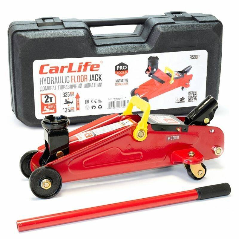 Домкрат гидравлический подкатной 2т Carlife 135-335мм в пластиковой упаковке (FJ590P)
