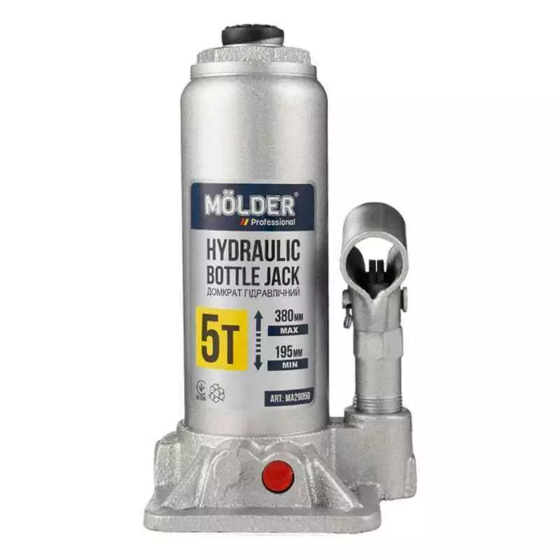 Гидравлический домкрат Molder MA29050 — это прочный и мощный инструмент, предназначенный для безопасного и эффективного подъема автомобилей массой до 5 тонн. Он станет надежным помощником в автосервисе, на СТО и в гараже каждого владельца внедорожников, микроавтобусов или легких грузовиков. Бутылочная конструкция обеспечивает устойчивость при работе, а компактные размеры делают его удобным для хранения и транспортировки. Домкрат поставляется в прочной картонной упаковке, подходящей как для розничного использования, так и для профессионального оборудования.