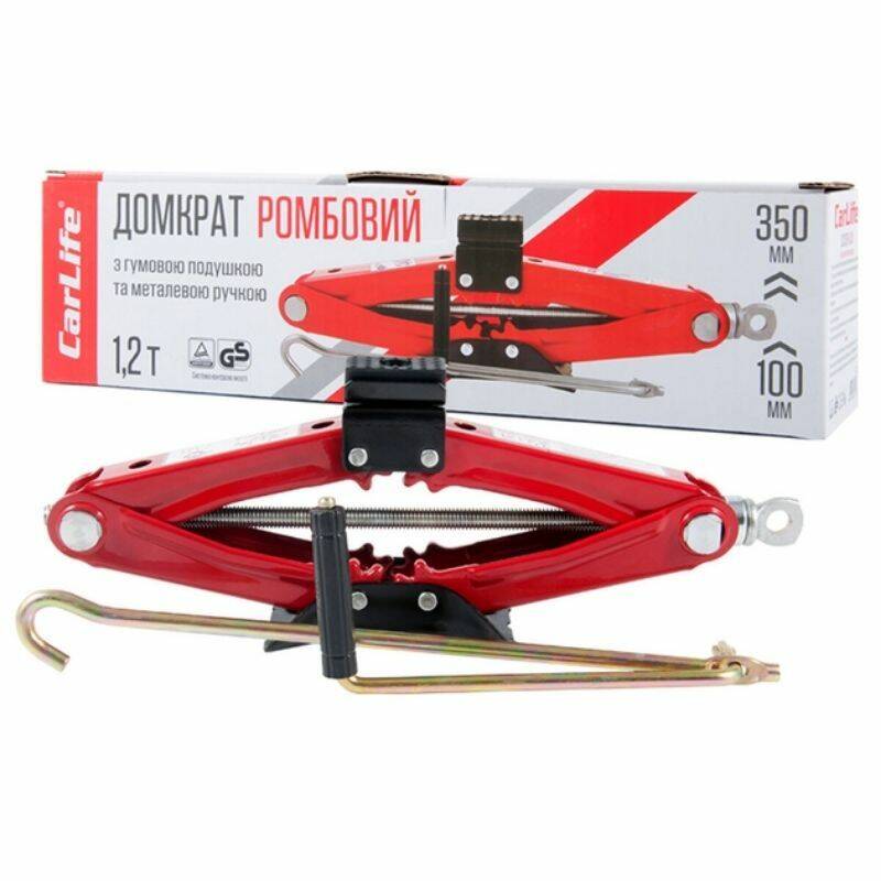 Домкрат механический ромбовидный 1.2т CarLife 100-350мм для автомобиля в картонной упаковке (SJ228)