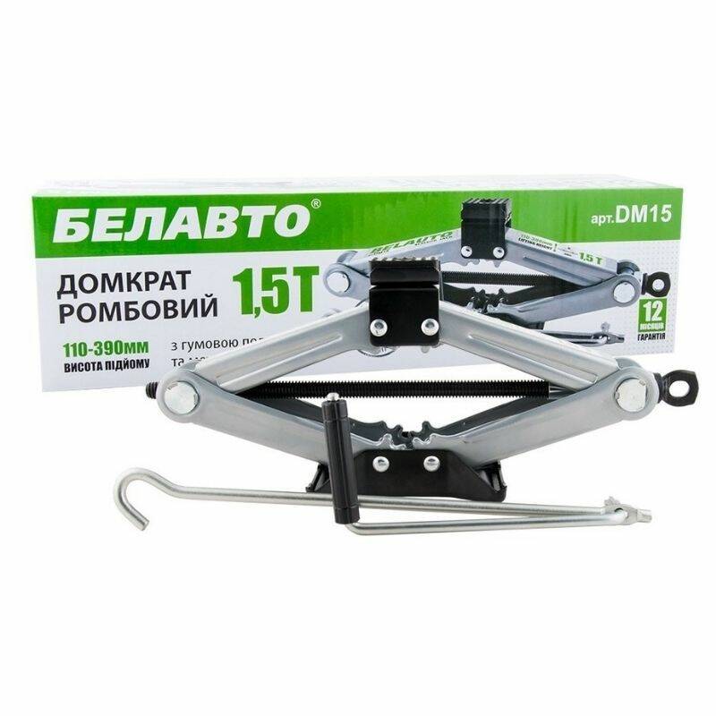 Домкрат механический ромбовидный 1.5т BELAUTO 110-390мм для автомобиля в картонной упаковке (DM15)