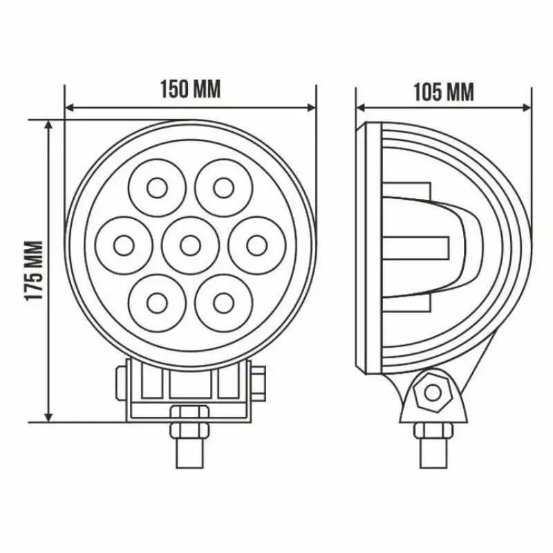 - Прочный корпус и высокая защита: Корпус изготовлен из алюминия с матовой поверхностью, а степень пыле- и влагозащиты IP69K позволяет использовать фару даже в условиях сильной грязи, дождя и высокотемпературной мойки.
