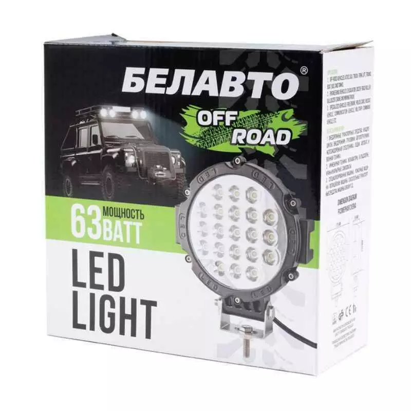 - Мощный световой поток 4200 лм: Фара оснащена 21 светодиодом суммарной мощностью 63 Вт, что обеспечивает яркость 4200 люмен. Это делает ее отличным решением для движения по бездорожью или в условиях ограниченной видимости.