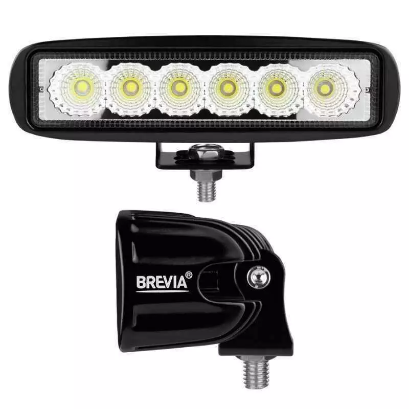 Дополнительная фара Brevia 10611FX1 с прямоугольным корпусом и рассеянным световым пучком Flood обеспечивает мощное белое освещение в сложных условиях. Благодаря яркости и устойчивости к внешним воздействиям, она идеально подходит для внедорожников, спецтехники и рабочих авто.