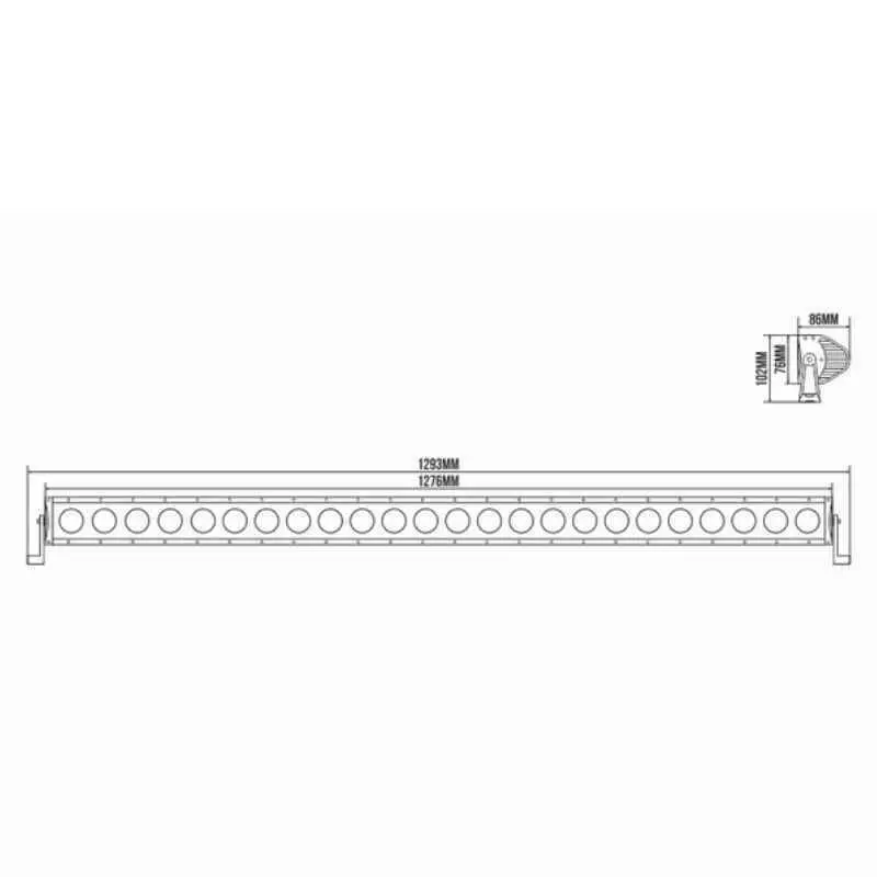 Несмотря на длину 127.6 см, фара имеет компактную высоту 8.6 см и глубину 7.6 см, что облегчает её установку даже в ограниченном пространстве.