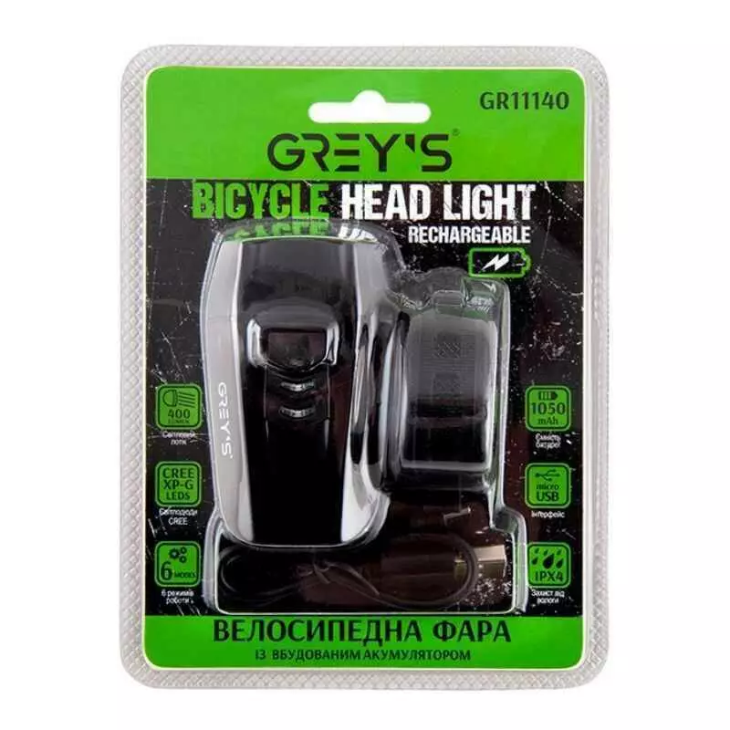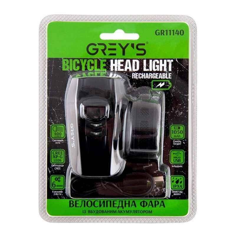 Фара на велосипед на руль 400Lm Grey's 1050mAh IPX4 6 режимов до 8