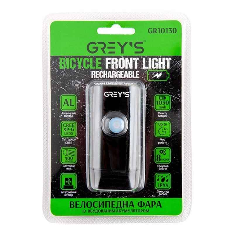 Фара на велосипед на руль 400Lm Grey's 1050mAh IPX4 8 режимов до 6