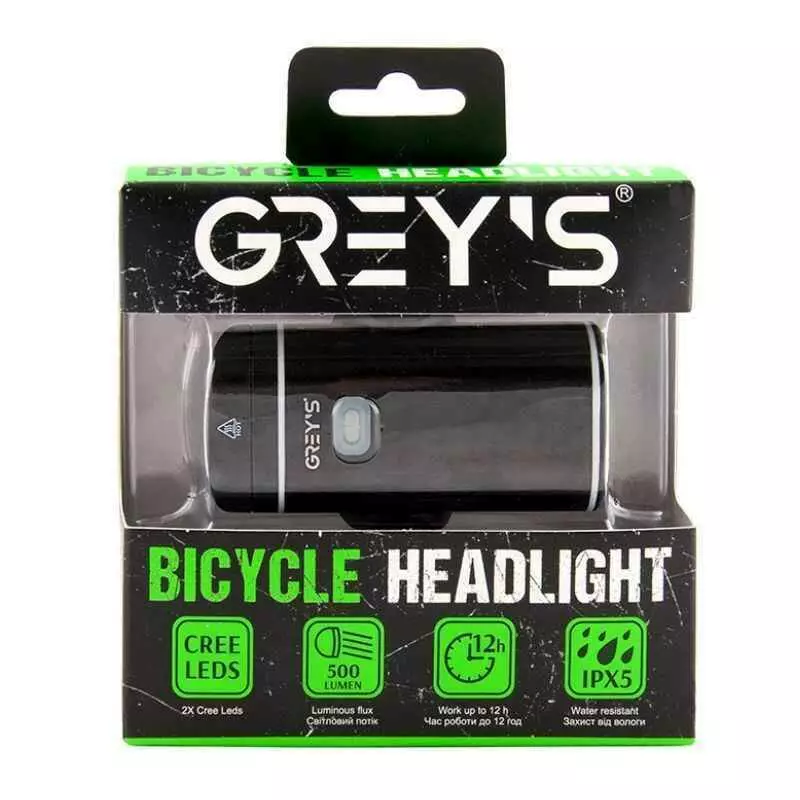 Фара на велосипед на руль 500Lm Grey's 1800mAh IPX5 4 режимов до 12