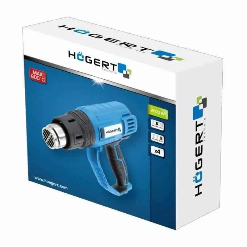 Фен строительный 2000Вт 500л/мин 350-600°C Hogert со ступенчатой регулировкой температуры (HT2C550)