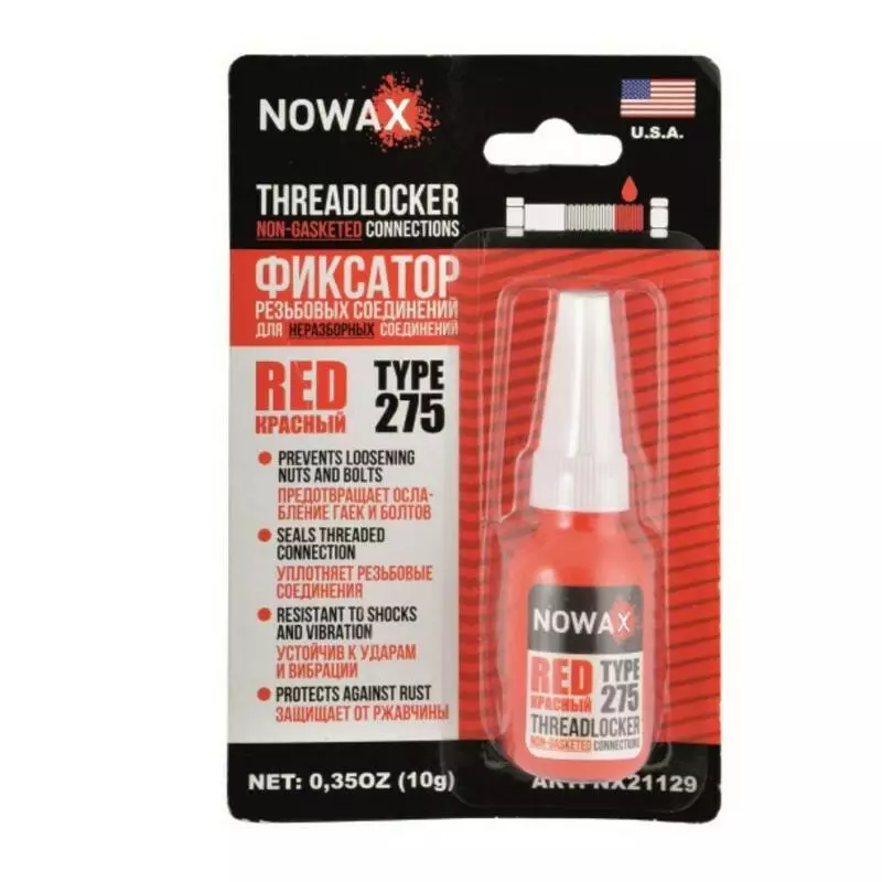 Фиксатор резьбы красный 3000 psi NOWAX -60+150°С 10г (NX21129)