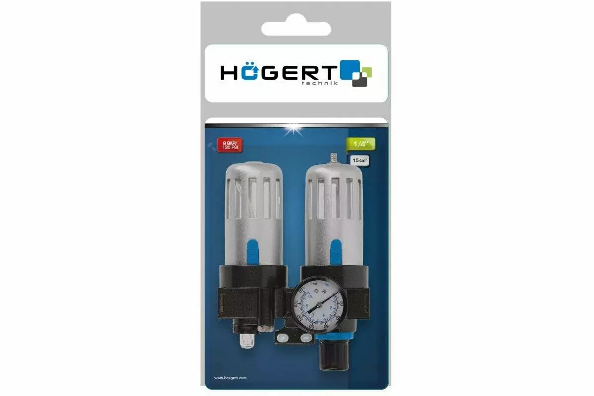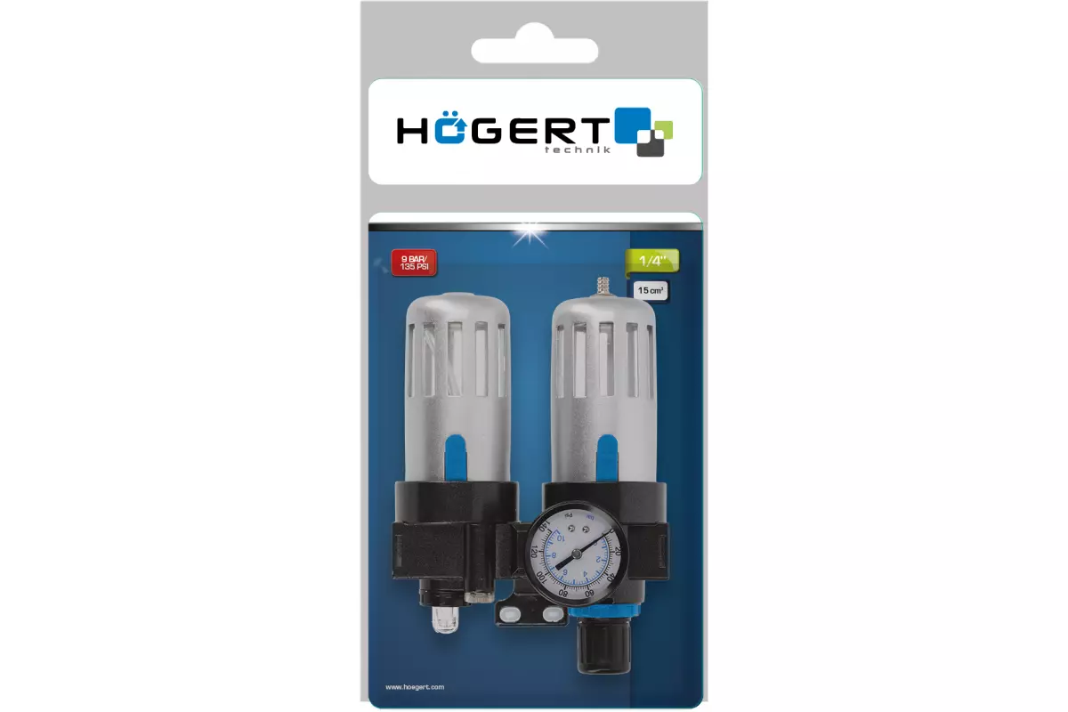 Фильтр-регулятор с манометром и лубрикатор пневматический 1/4", 90см³/60см³, 9 бар/135 PSI (HT4R875)