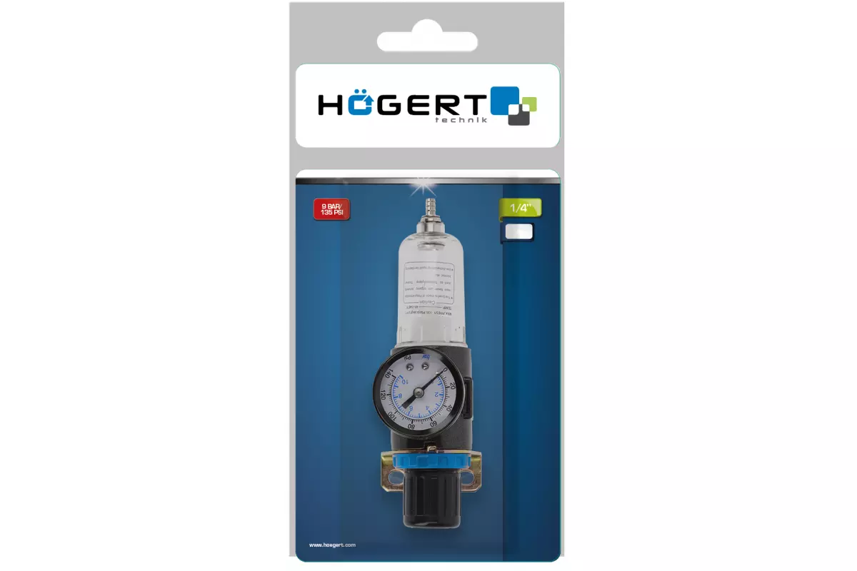 Фильтр-регулятор с манометром пневматический 1/4", 90см³, 9 бар/135 PSI (HT4R872)
