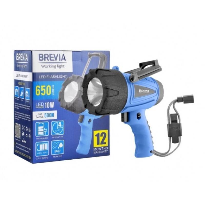 Фонарь проф. Brevia LED 500М, 10W LED 650lm, 4400mAh, microUSB